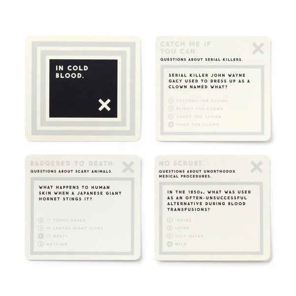 Trivia should be fun–not feel like a homework assignment. That's why this Truly Terrifying Trivia set by Brass Monkey is filled with some of the most random true crime & generally creepy knowledge we could find…and even better, you'll choose your questions from a bunch of misleading categories. For example: 'Suicide Squad.' Those are questions about Dr. Kevorkian, by the way.