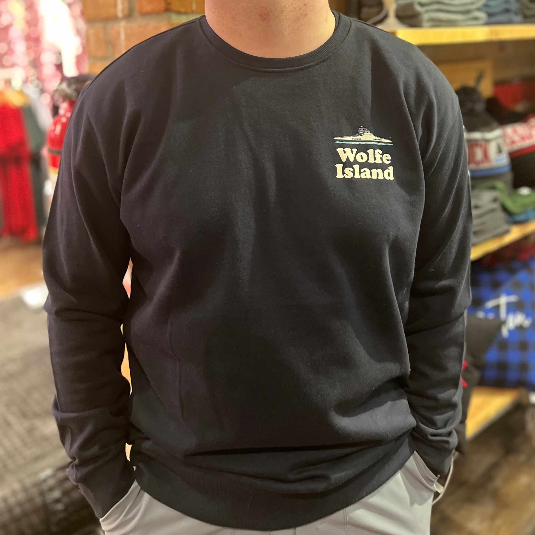 "Sorry I'm late!" This crewneck is perfect for those Wolfe Island commuters.